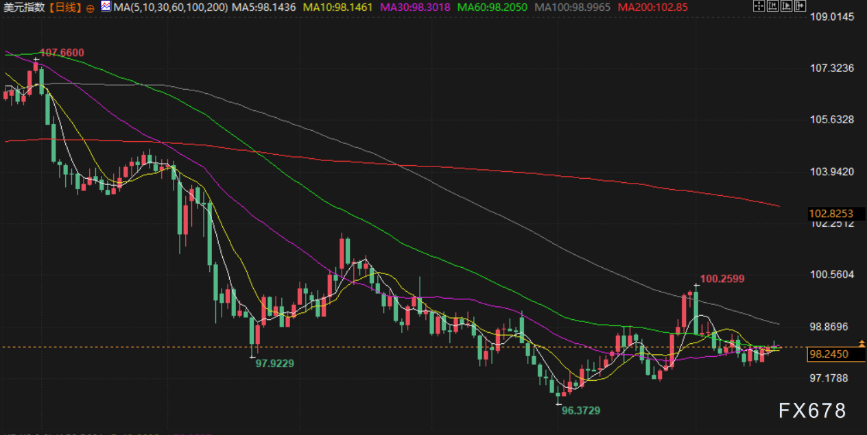 衡量美元兑一篮子货币汇率的美元指数日内下跌0.13%,报98.20;欧元上涨0.09%,报1.1657美元。日元兑美元上涨了 0.32%,报147.2 日元。