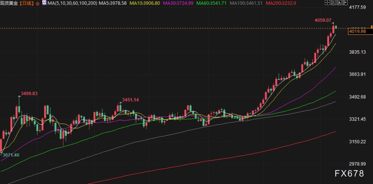 在AI持续受到热捧的背景下,美国国内及地缘政治不确定性上升,推动黄金突破每盎司4000美元大关,投资者买入黄金对冲风险。