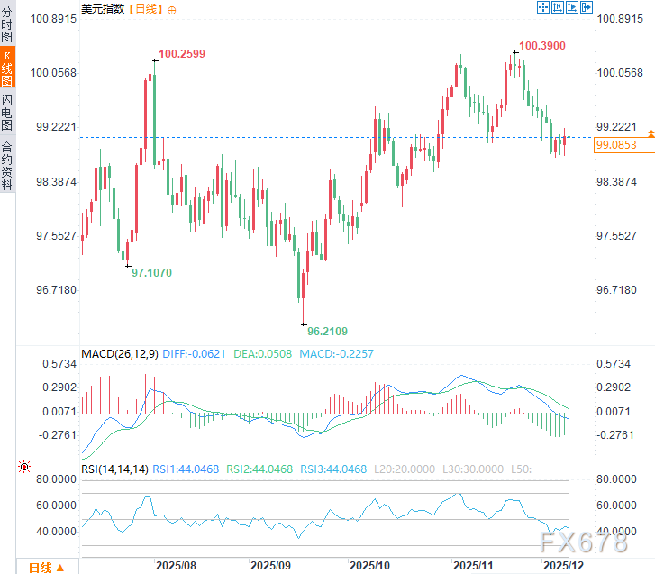 许多在新兴经济体中,因美元走强和全球流动性紧张而面临困境的国家,将有望从美国政策的转变中受益。周二(12月9日)美元指数于99.10附近震荡。预计即将到来的降息的影响将跨越美国国境,赋予其他央行更大的政策灵活性,并助力全球投资流重获动力。在会议前预期走强之际,市场正在发出信号:放松政策的经济理由已明显强化,全球货币周期的下一阶段正在临近。