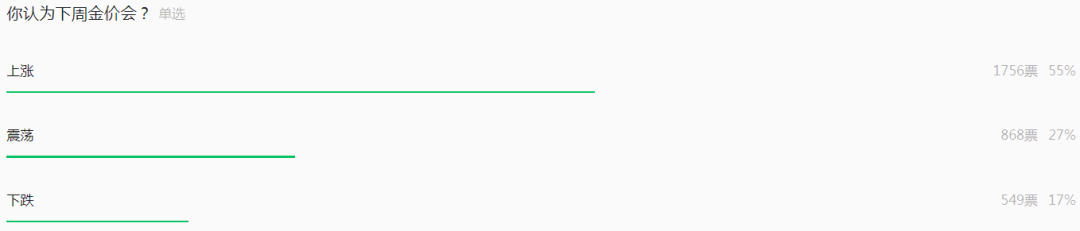12月1日当周,伦敦金价格开盘4219.89美元/盎司,最高4264.56美元/盎司,最低4163.57美元/盎司,收盘4198.52美元/盎司。市场人士认为本周国际金价震荡偏多可能性较大。投票显示,有55%的读者看涨本周金价、27%看震荡、17%看空。