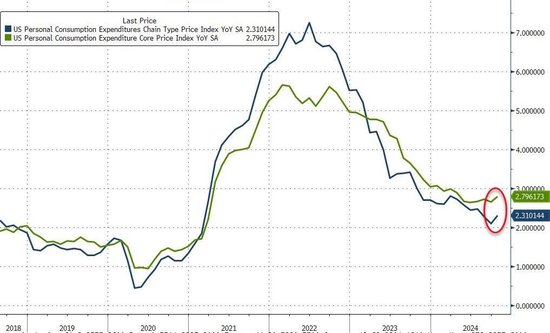 美联储最爱的通胀指标——剔除食品和能源的核心PCE物价指数10月同比上涨2.8%,与预期的2.8%持平,9月前值为上涨2.7%。