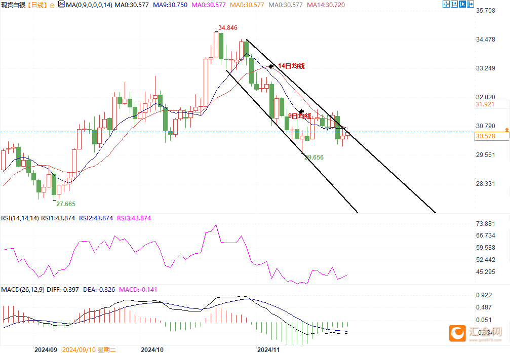 下行方面,Faruqui表示,银价可能在心理关口30.00美元附近找到支撑。如果突破此关口,可能会加剧看空情绪,推动银价进一步下跌,目标可能为下行通道下边界28.50美元,随后为三个月低点27.69美元。