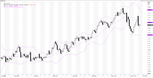 从日线图看,金价在10日均线上方争斗激烈,布林带价格触碰中轨后被压制向下,短期面临较大的回调压力。