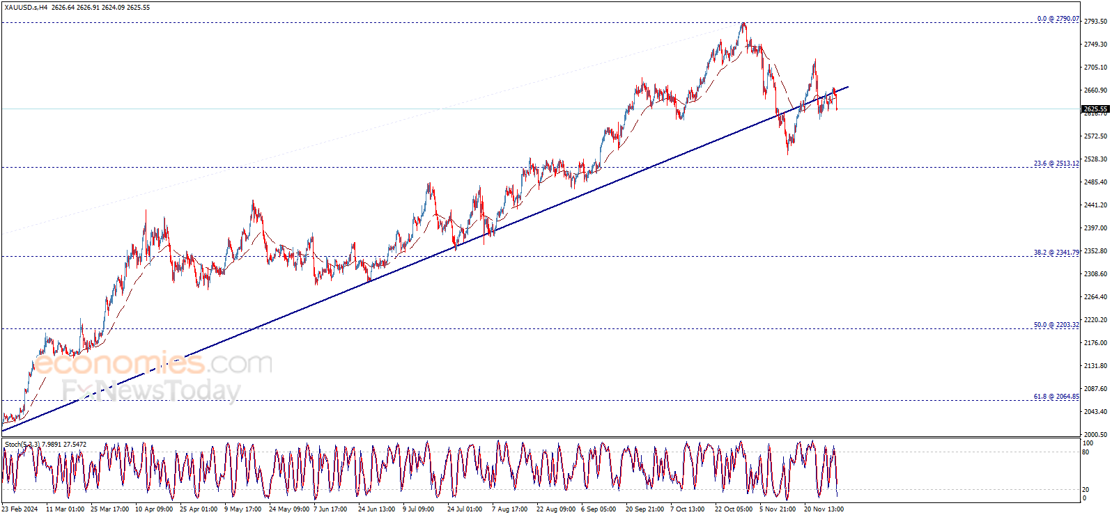 24K99讯 周一(12月2日)亚市尾盘,现货黄金维持日内暴跌走势,目前金价位于2623美元/盎司附近,日内跌幅超过27美元。知名财经资讯网站Economies.com周一最新撰文,对日内黄金技术前景进行分析。