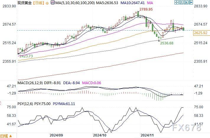 现货黄金日线图来源:易汇通北京时间12月2日14:59 现货黄金 报 2626.13 美元/盎司