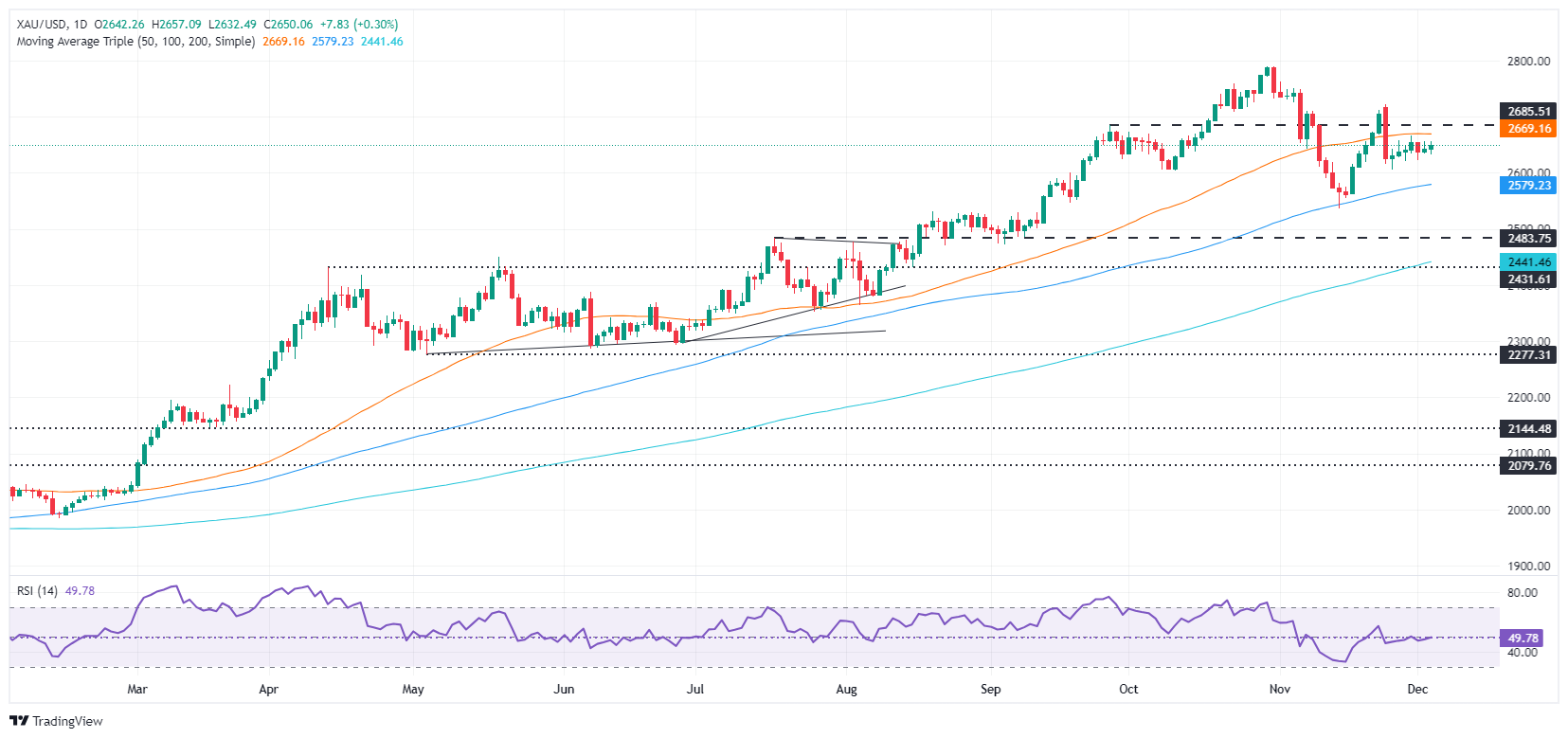 截至周三收盘,现货黄金小幅上涨0.24%,收报2649.68美元/盎司。