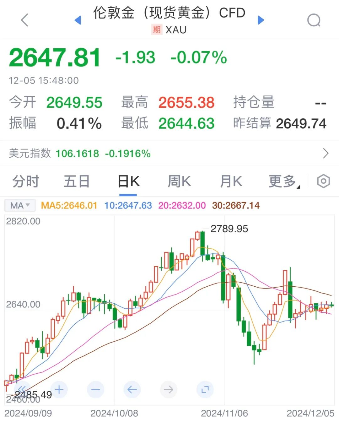 目前市场预计,美联储12月维持利率不变的概率为22.5%,累计降息25个基点的概率升至77.5%。随着议息会议的临近,市场降息预期开始升温,但国际金价没有随着降息预期的升温而开启涨势。本周五(12月6日)的非农数据和近期通胀数据将成为市场的焦点,近期公布的私营企业就业数据显示劳动力市场走弱,但对国际金价的提振作用有限。如果11月的非农就业数据再次走弱,或刺激市场增加对12月降息的押注,提振国际金价突破震荡区间,如果数据显示劳动力市场强劲,不排除国际金价继续震荡或下探2600美元/盎司关口。