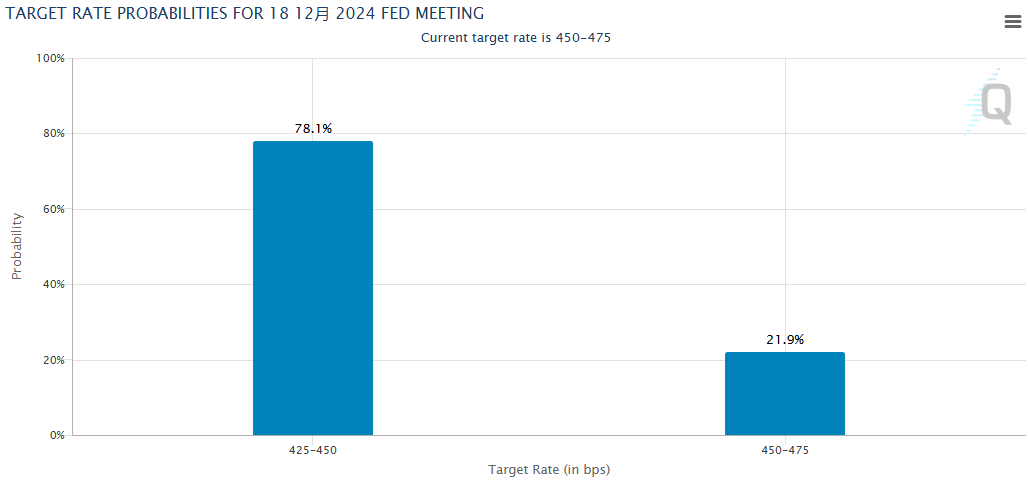 芝商所的美联储观察工具显示,交易员预计美联储本月降息的概率,在周三进一步升至了78%,高于前一天的72%。相关概率在盘中更是曾一度超过80%。