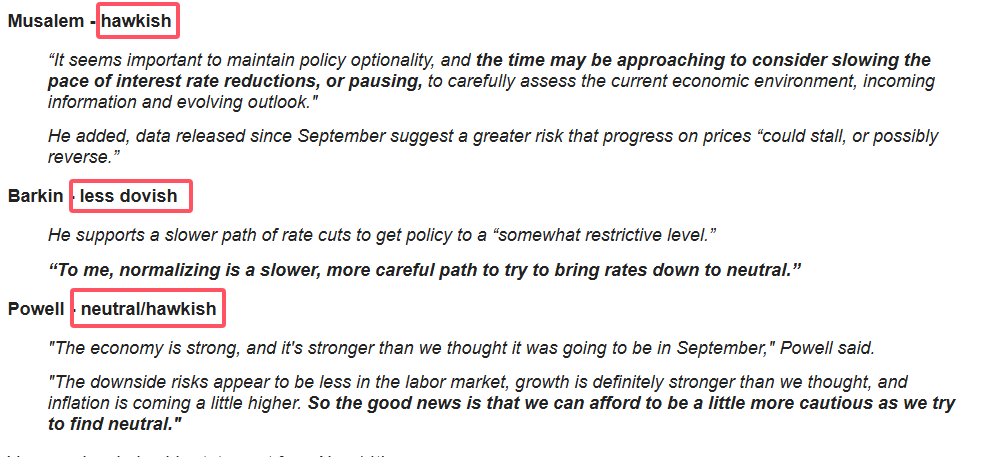 不过,颇有意思的是,当天发表讲话的多位美联储官员,态度倒是明显颇为鹰派: