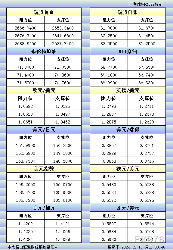 xm外汇:12月10日亚市更新的支撑阻力:金银原油+美元指数等八大货币对