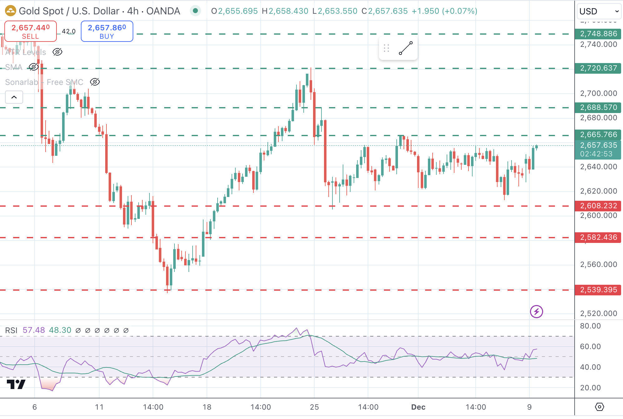 Alcala称,在基本面有利的情况下,金价目前正努力确认突破过去两周通道的顶部2665美元/盎司。一旦确认突破上述水平,金价下一个目标将是2690美元/盎司,然后是11月24日高点2720美元/盎司。