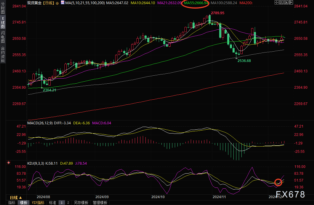 技术面方面,留意金价能否站稳在55日均线2666.95上方,如果收盘于该位置上方,则有望启动新一轮涨势,否则仍需提防金价的震荡回落风险。