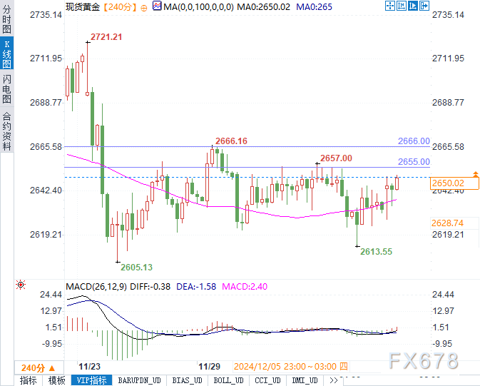 现货黄金价格在本周初表现积极,周一(12月9日),金价交投于2650.56美元/盎司,日内涨幅0.67%。当前市场受到多重因素影响,包括美联储可能的进一步降息预期、地缘政治紧张局势的加剧以及全球避险情绪的升温。然而,由于市场对美国通胀数据的关注以及美元的强势表现,黄金涨势似乎暂时受限。