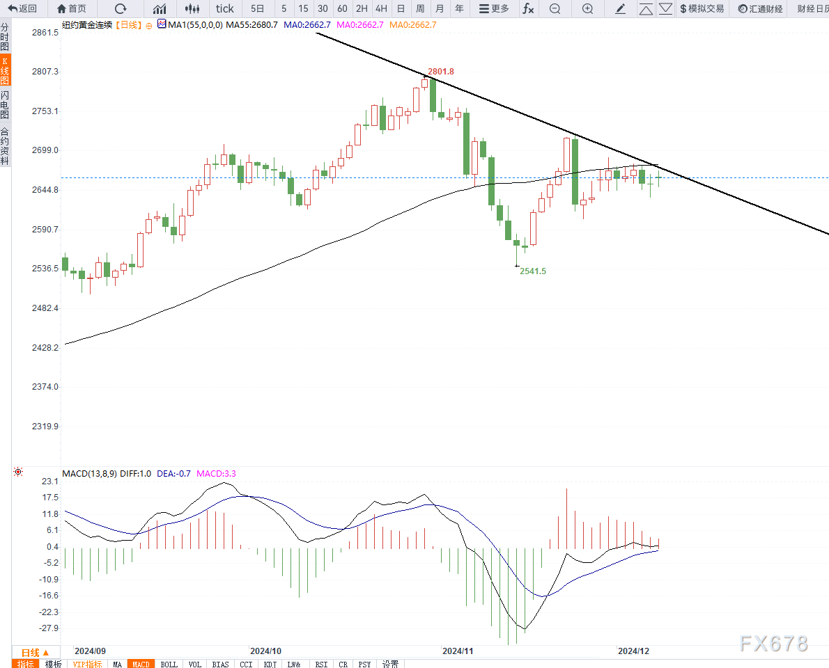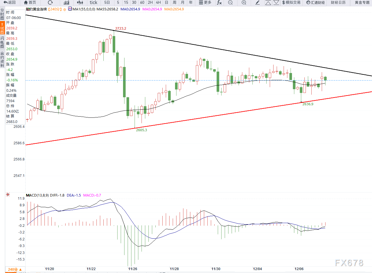 周一(12月09日)亚盘尾盘时段,COMEX黄金交投于2660美元附近,基本面上周五美国非农数据超预期,但是失业率上升。