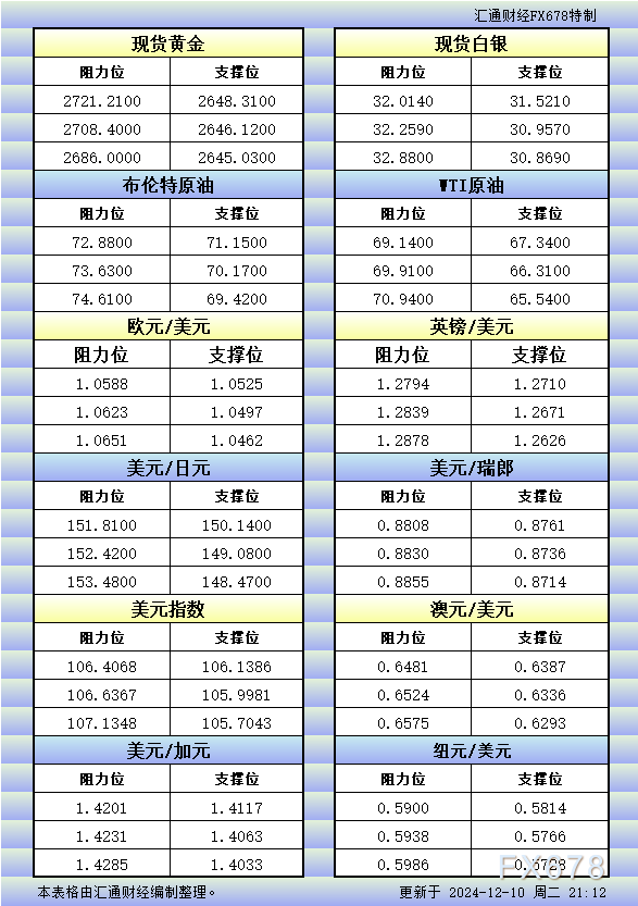 xm外汇:12月10日美市更新的支撑阻力:金银原油+美元指数等八大货币对