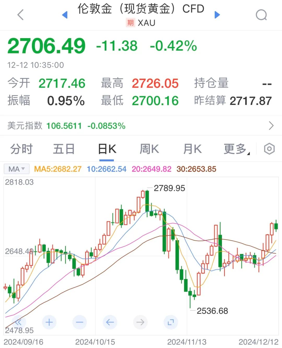 近期,国际金价受到多重利好因素支持突破了2700美元/盎司关口。全球央行购金叠加年底黄金消费旺季到来,有望推动实物需求回暖,或为国际金价上涨提供动能。此外,中东地缘局势紧张,加剧了市场的避险情绪,进一步推高了国际金价。