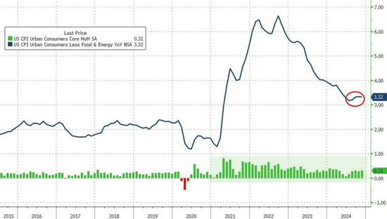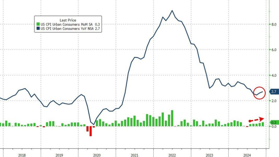 CPI报告显示,不包括食品和能源的商品成本上涨0.3%,这是2023年5月以来的最大涨幅,主要受家居家具和服装推动。在过去一年半的时间里,这一类别一直是通胀降温的主要推动力。