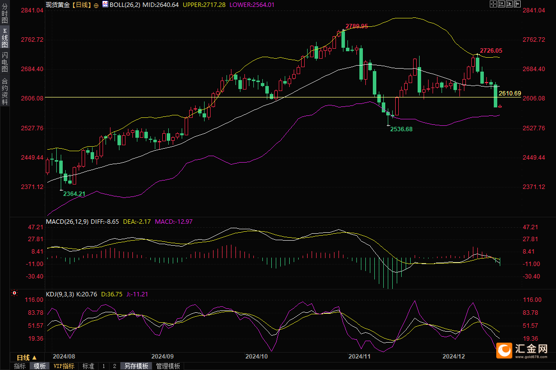 “市场难以消化明年仅有两次降息;黄金走低,但仍在坚守,”独立金属交易商Tai Wong说:“如果黄金能守在2600美元以上,多头将感到高兴。”