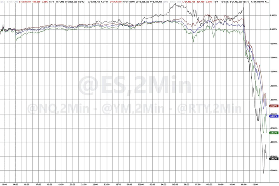 小盘股指最低跌超5%,纳指遭遇自7月套利交易大崩盘以来最差一天