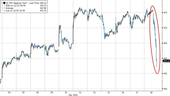 此前市场期待美联储明年继续大幅降息,进一步推动美股上涨,但美联储谨慎态度引发美债收益率飙涨,10年期国债收益率一度涨超4.50%,对股市构成压力。美联储点阵图+经济预期概要发布后,避险情绪急剧升温,美股跳水并收于日低附近,刷新日低时,道指跌近1150点、标普跌逾3%、纳指跌超3.8%、小盘股指跌超5%。特斯拉狂泄超8%,美光科技财报出炉,盘后一度跌超17%: