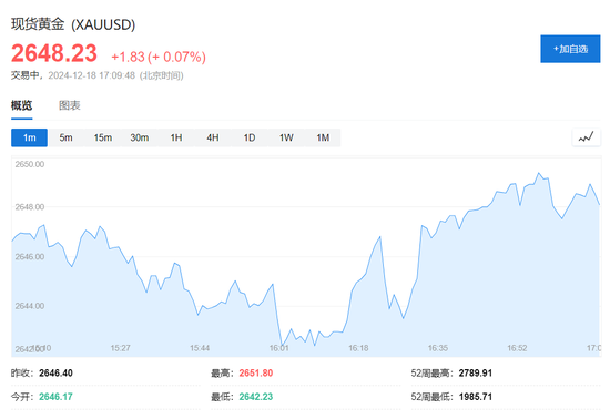 现货黄金小幅上涨,现报2648.23美元/盎司。