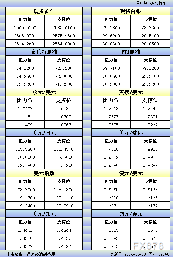 XM官网:12月20日亚市更新的支撑阻力:金银原油+美元指数等八大货币对