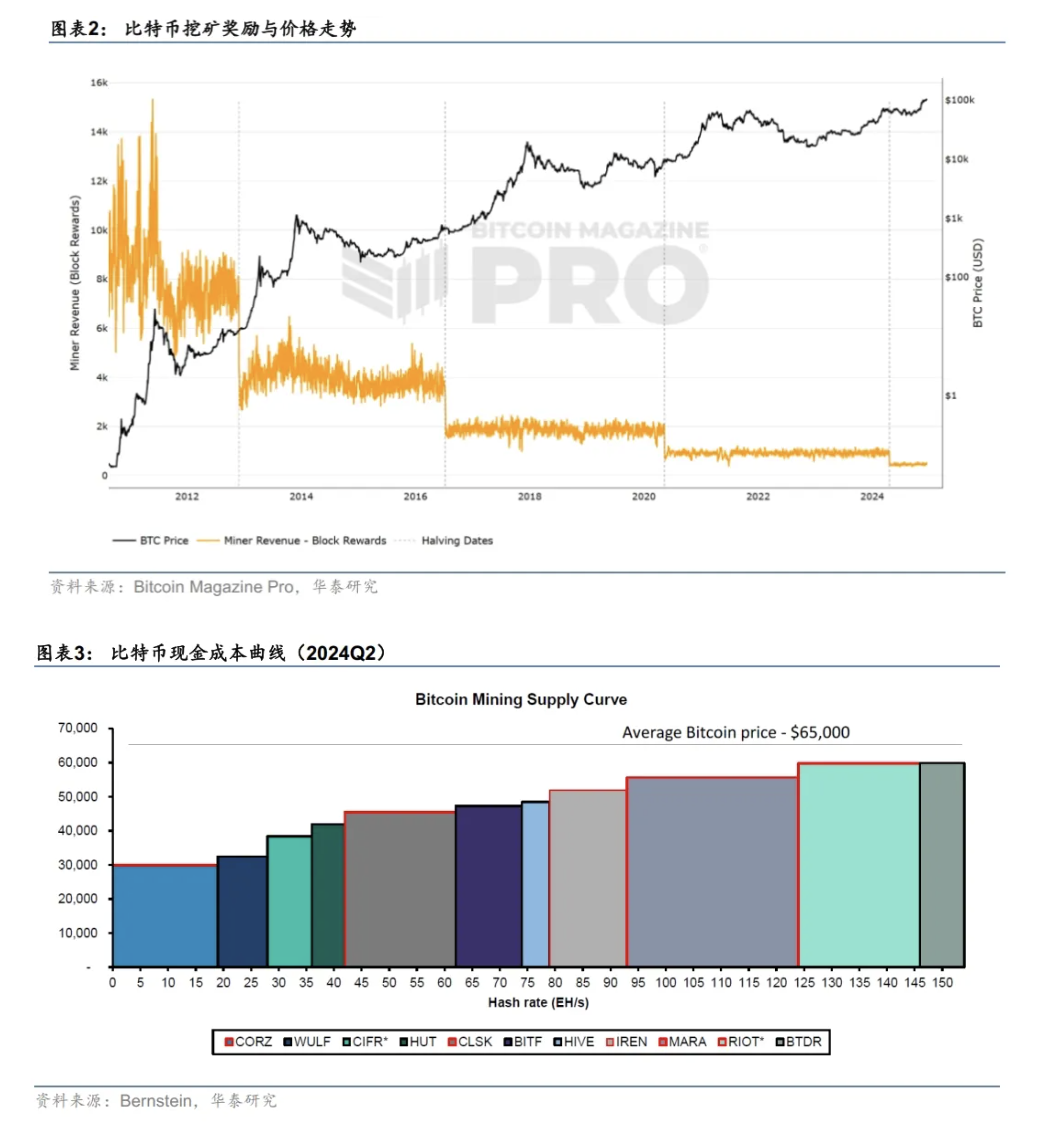 第一、从供给约束看,比特币和黄金都属于有着一定数量上限的资产,这也决定了两者有较强的抗通胀属性。相比而言,比特币的供给约束看似更为严格。目前比特币流通供应量约为1980万枚,接近2100万枚上限。随着今年挖矿奖励减半后,比特币开采难度提升,且近95%的比特币已被开采,未来供给增量有限。黄金2023年供给量为4950吨,约占全球存量黄金的2.3%,供给规模和增速较低,相较于比特币的刚性上限黄金供给更加宽松。