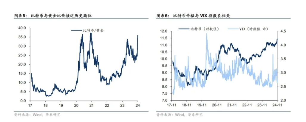 第三、从货币属性来看,黄金作为货币有着悠长的历史,而比特币的货币属性需要更多政府部门的背书和时间的验证。马克思曾说过“货币天生是金银”,而比特币作为新生事物,它的类货币属性背后逻辑充满争议,仍需进一步巩固。监管态度也会对加密货币市场情绪产生较大影响,特朗普上任,对加密货币全方位的支持,此前最大的风险是国家监管政策带来的政治风险,现在这一风险在美国很大程度被消除。而比特币的长期风险在于技术层面,比如量子计算,随着未来算力进一步强化,也不排除有一天可能破解比特币加密算法。