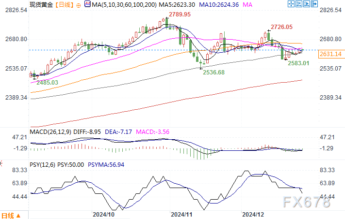 现货黄金日线图来源:易汇通北京时间12月27日10:11 现货黄金 报 2631.14 美元/盎司