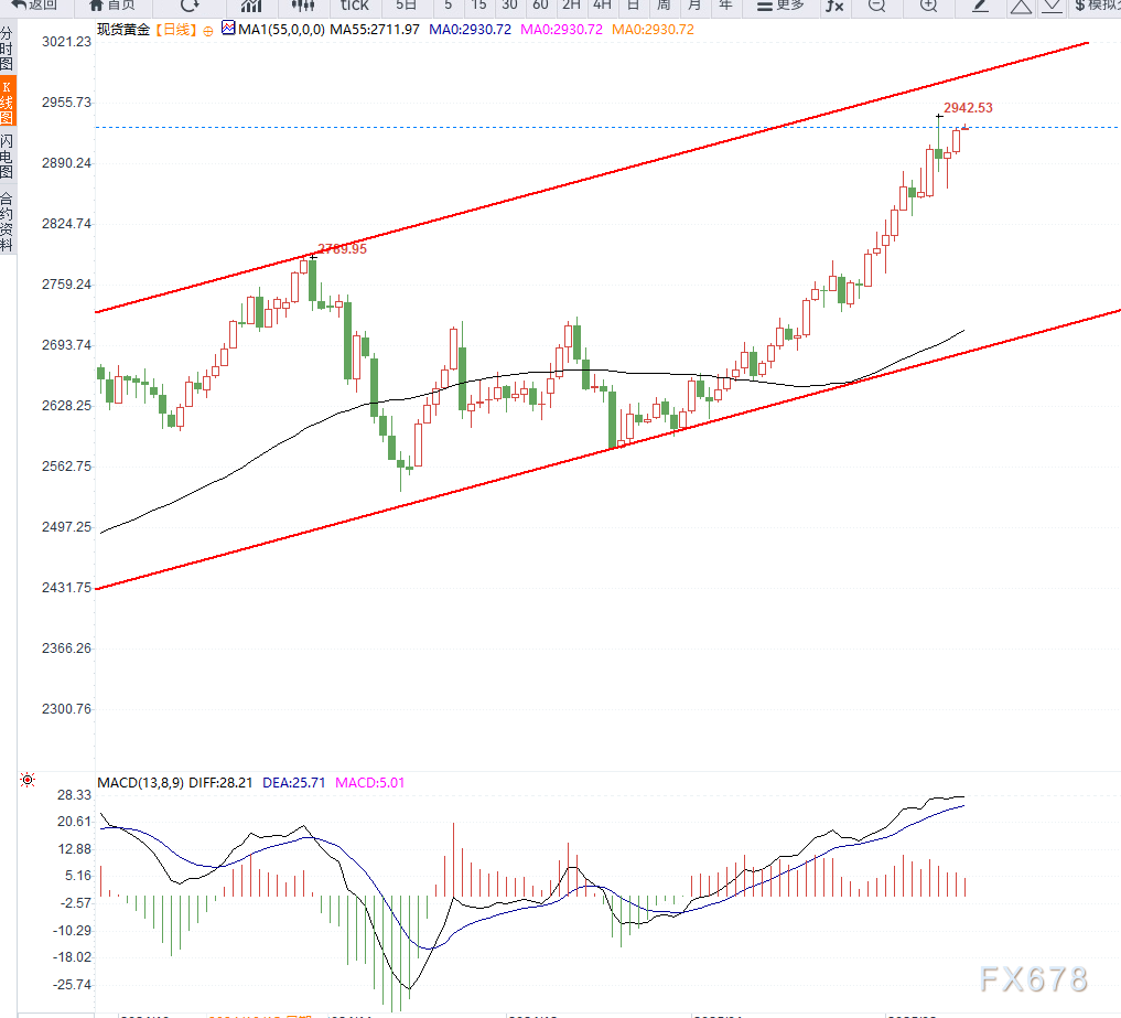 现货黄金周五亚洲早盘报2930美元/盎司,接近周二创下的2942.68美元的历史新高,并有望连续第七周录得上涨。这一涨势不仅反映出避险需求的增加,也与全球央行增持黄金的趋势一致。