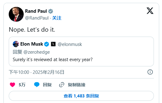 肯塔基州(诺克斯堡所在地)共和党籍参议员兰德·保罗(Rand Paul)周日也在X上对Zerohedge的查账黄金储备提议表示赞同,并建议马斯克采取行动。