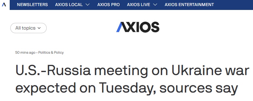 美国新闻网站Axios报道称,两名知情人士透露,美国和俄罗斯高级官员将于周二在沙特阿拉伯举行会议,讨论结束乌克兰战争的可能协议,并为特朗普-普京峰会做准备。