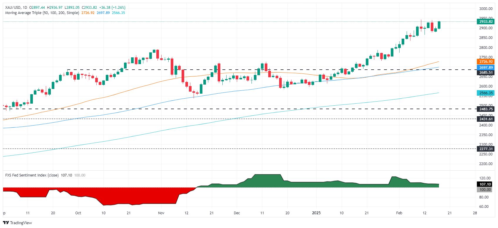 24K99讯 周二(2月18日),因美国总统特朗普关税计划引发市场对美经济增长的担忧,导致资金为求避险流入黄金市场,黄金价格飙升逾1%。FXStreet分析师Christian Borjon Valencia撰文,对金价技术走势进行分析。