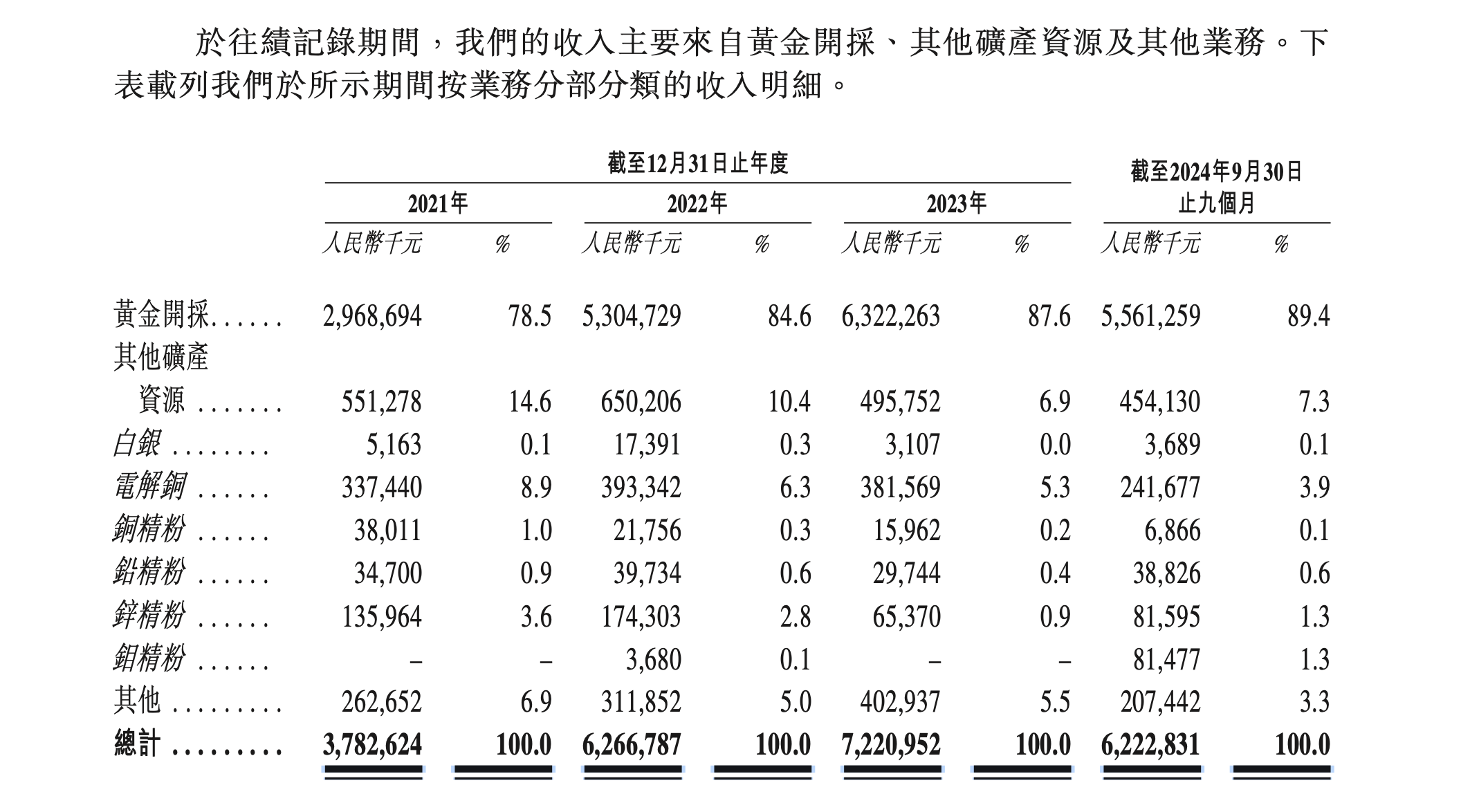 不过赤峰黄金的核心收入依赖黄金业务,截至2024年9月30日,黄金销售收入占总收入比例高达89.4%。
