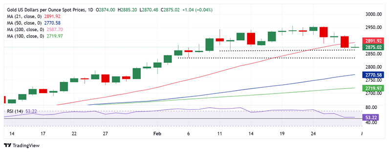 24K99讯 周五(2月28日)亚市盘中,现货黄金短线突然加速下滑,金价目前跌至2857美元/盎司附近,日内大跌20美元。FXStreet高级分析师Dhwani Mehta撰文,对金价技术技术走势进行分析。