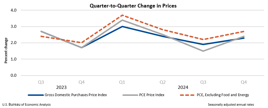 报告还显示,美联储最青睐的通胀指标——消费者支出价格(PCE)指数Q4年化环比上涨2.4%,扣除食品和能源后核心价格上涨2.7%,均高于央行2%的目标。美国月度PCE物价指数将于明日公布。