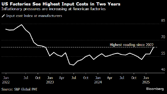 木材和钢铁等材料的成本在疫情后的几年里一直居高不下,现在涨幅更大。根据S&P Global数据,一项衡量制造商投入价格的指标本月达到了2022年10月以来最高。美国供应管理学会的一项类似指标也在上个月升至5月以来最高。