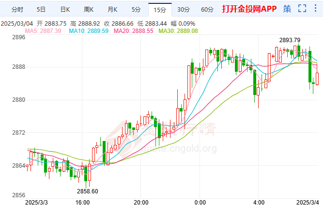 因美元走软,以及对美国总统特朗普关税政策的担忧引发了避险买盘,周一现货黄金日内反弹超1%,一度逼近2900美元关口,但未能冲上此处,最终收涨1.27%,报2890.84美元/盎司。