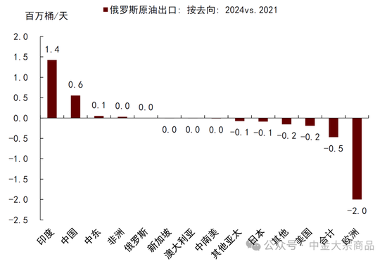 图表16:俄罗斯原油出口变化(2024vs.2021)