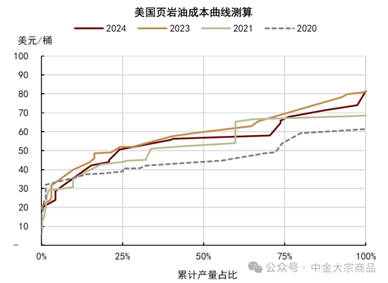 随着油价中枢下移压力显现,我们认为北美页岩油作为边际生产者或迎来初步考验,减产压力最早或在2025年中开始显现,可能有望缓解今年全球石油市场的小幅过剩压力,为油价提供底部支撑。基于21家北美页岩油企业数据,我们测算2024年美国页岩油产量75%成本分位数约为68美元/桶。若WTI油价中枢降至60-65美元/桶,我们提示Permian产区页岩油产量或在今年下半年面临环比下滑压力,全年产量或较2024年下降10-20万桶/天。