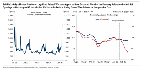 高盛就预计,2月份非农就业人数有望增加17万人——略高于市场预期中值的16万。高盛认为,联邦政府裁员、冻结招聘和“买断”计划等综合裁员措施,可能仅只会对2月就业增长造成1万人的有限拖累。该行预计,由于以下几个原因,政府雇员领域对2月份非农的拖累将更为温和: