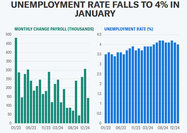 1月份,美国就业市场增加了14.3万个非农就业岗位,低于市场预期,不过当时对去年11月和12月非农数据的上修、以及失业率的意外回落,仍令这份前月的非农报告整体显得颇为出彩。