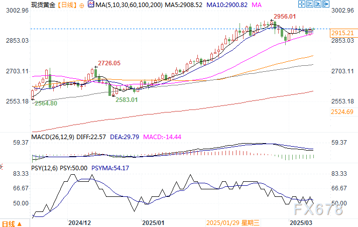 对全球贸易战将使美国和全球经济陷入衰退的担忧引发了股市的大幅抛售,标准普尔500指数(SPX)从2月份的高点下跌了8.9%。与此同时,金价在每盎司2900美元附近盘整,表现明显优于股市大盘。