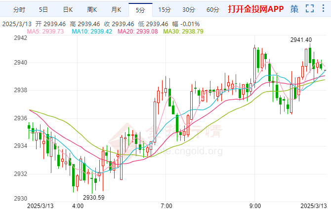 周四(3月13日)亚市盘中,现货黄金在近两周高位窄幅震荡,最新黄金价格交投于2940美元附近,美国CPI低于预期,加剧了对美联储宽松政策的猜测,并增强了黄金的吸引力,另一方面美欧关税威胁升级,避险需求再度给金价提供上涨动能。