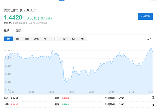 加拿大央行降息决议公布后,美元兑加元短线波动不大,报1.4420。