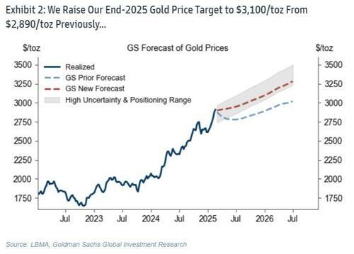仅几周前,高盛大幅上调2025年底金价预期,预计2025年底金价将达到3100美元/盎司,高于此前预测的2890美元/盎司。同时,高盛贵金属研究团队重申“做多黄金”的投资建议,指出各国央行的长期买盘需求是推动金价持续走高的核心因素。