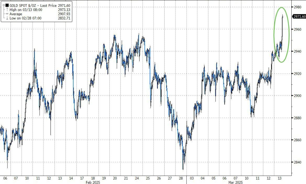 周四,因特朗普最新威胁加征欧洲进口商品关税,加剧市场避险情绪,金价再创历史新高,期货黄金一度涨近1.8%逼近3000美元大关,金银矿业股普涨。稍早前,高盛再度上调金价预期,称央行购金成核心驱动力,金价年底或涨至3250美元。