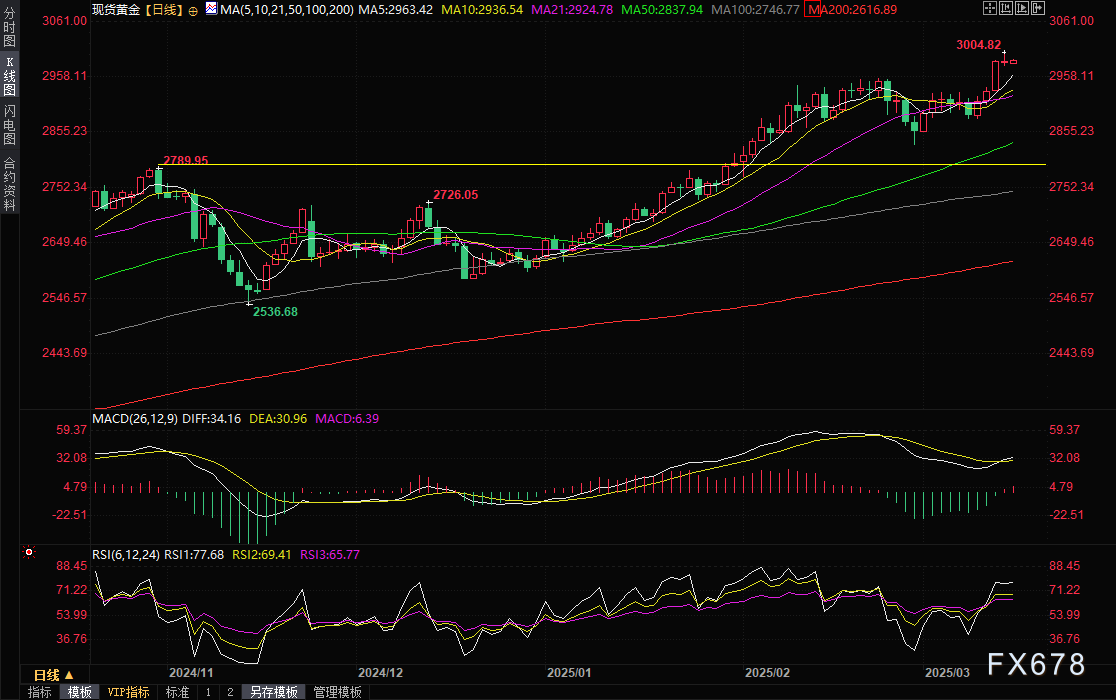 独立金属交易商Tai Wong表示,黄金突破3000美元里程碑的原因是 “鉴于特朗普给股市造成的动荡,陷入困境的投资者寻求终极避险资产”。
