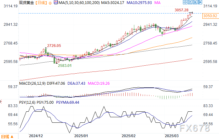 现货黄金日线图 来源:易汇通北京时间3月20日13:41 现货黄金 报 3045.03美元/盎司。