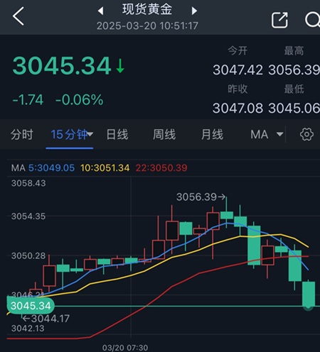 北京时间10:51,现货黄金报3045.34美元/盎司。